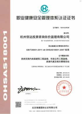 職業(yè)健康安全管理體系認(rèn)證證書(shū)