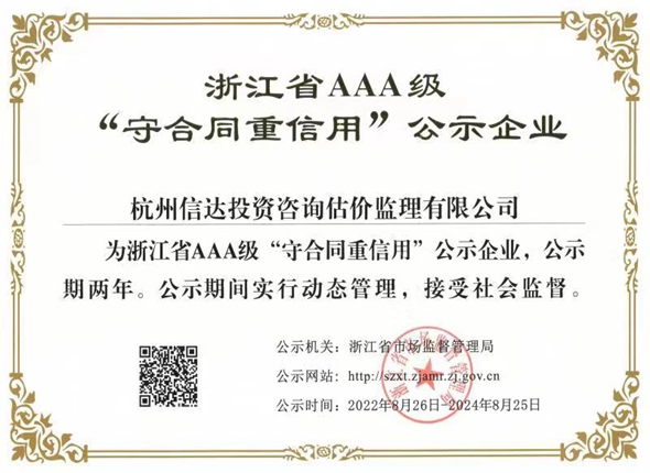 浙江省AAA守合同重信用企業(yè)(2024-2027)