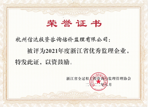 2021年度浙江省優(yōu)秀監(jiān)理企業(yè)
