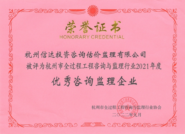 2021年度杭州市全過程工程咨詢與監(jiān)理行業(yè)優(yōu)秀咨詢監(jiān)理企業(yè)