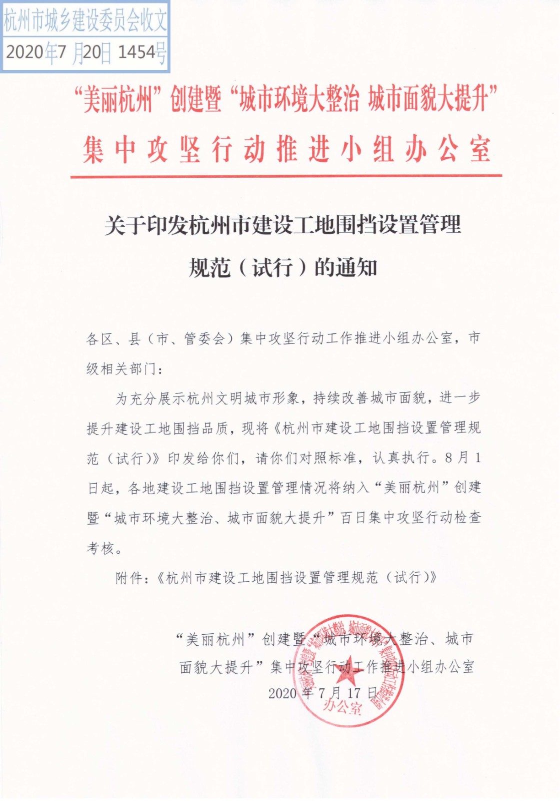 關(guān)于印發(fā)杭州市建設(shè)工地圍擋設(shè)置管理規(guī)范(試行)的通知